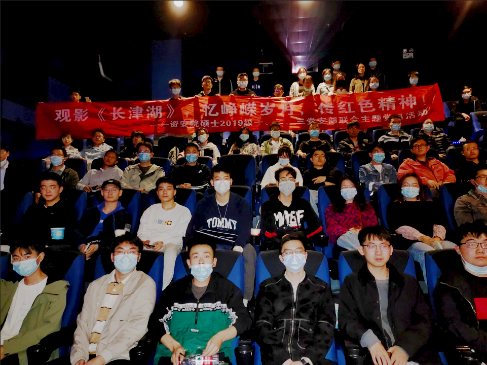 为庆祝新中国成立72周年,进一步深化党史学习教育,弘扬英雄精神,缅怀革命先烈。10月13日晚,资安院硕士19级一、二、三支部开展联合主题党日活动,集体观看了抗美援朝历史题材影片《长津湖》。