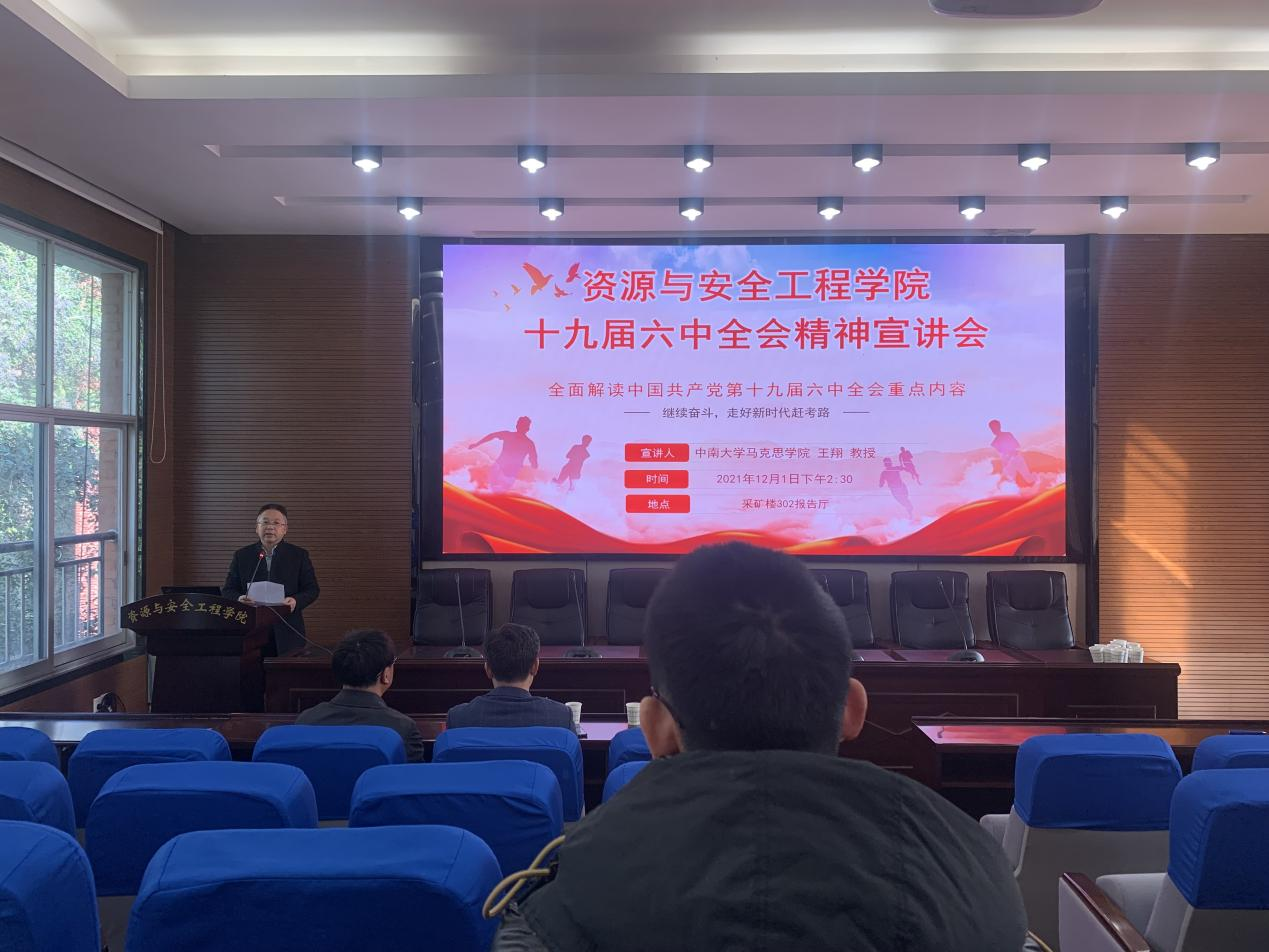 院长王翔教授为全院教师、预备党员、党支部委员主讲了一场关于学习十九届六中全会精神的专题宣讲会,宣讲会在老虎机种类采矿楼302报告厅隆重举行。