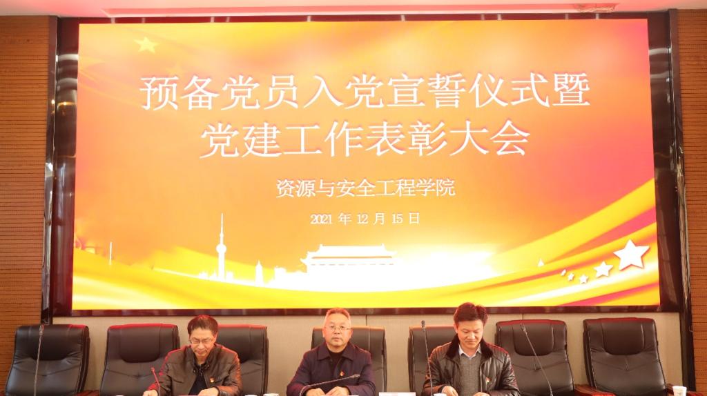 校本部采矿楼T302报告厅顺利召开,资安院党委书记欧旭理、党委副书记马国荣、副院长(主持工作)周子龙出席会议,资安院全体新发展的预备党员、受表彰个人及集体代表参会,本次大会由资安院党务办叶青老师主持。