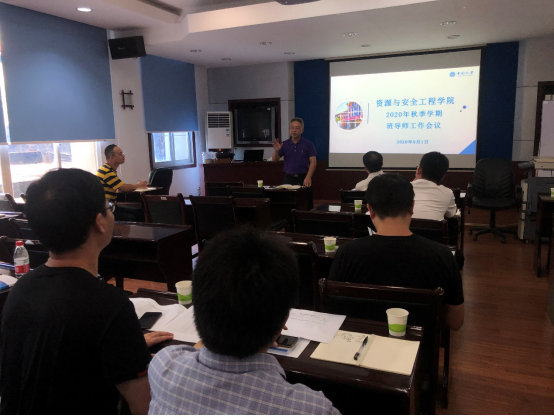 全体班导师会议于采矿楼224顺利举行。院党委书记欧旭理,党委副书记马国荣,全体辅导员及班导师参加,会议由2020级本科生辅导员于谦老师主持。