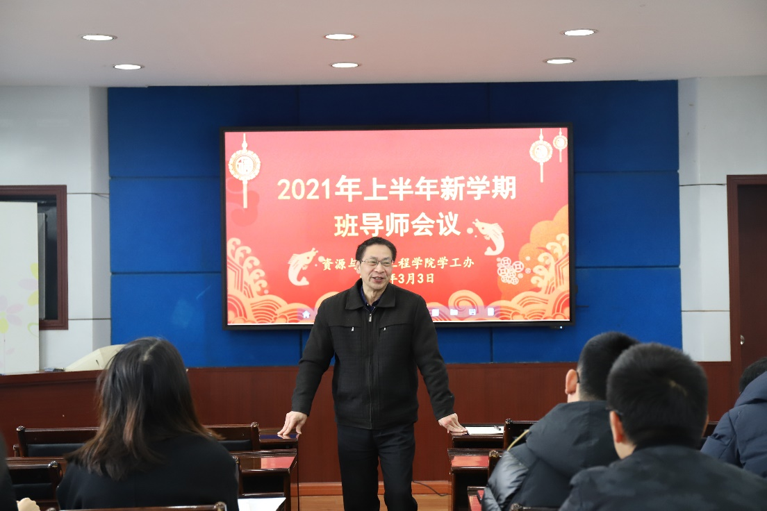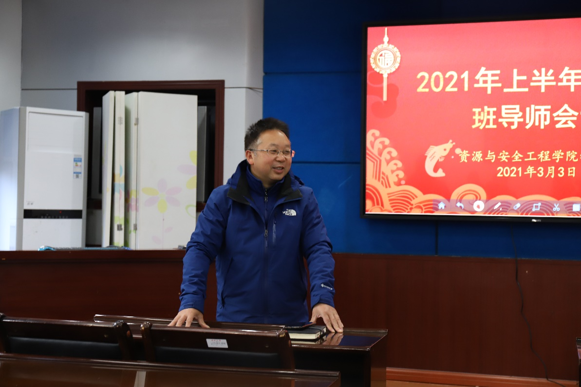 校本部采矿楼224会议室顺利进行。本次会议由于谦老师主持,资安院党委书记欧旭理、党委副书记马国荣出席,资安院全体本科生班导师参会。