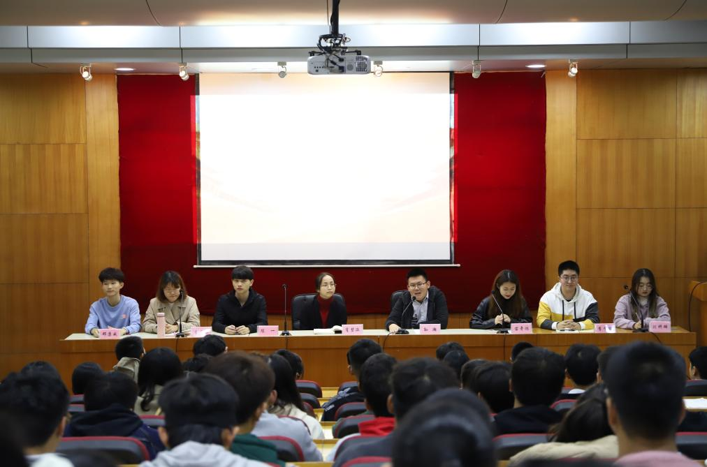 学生组织主席团成员作自我介绍,并对各位干事提出了希望。其中学生会主席苗奇鸿同学为大家讲述魔术师与勺子的寓言故事,希望各位干部团结一心,为同学们服务,其他主席团成员也希望各位干事能够保持认真的态度、积极完成工作,并在工作中找到自己的归属感。最后,各部门干事以幽默的语言向大家介绍了自己的部门,见面会在一片欢声笑语中落下帷幕。