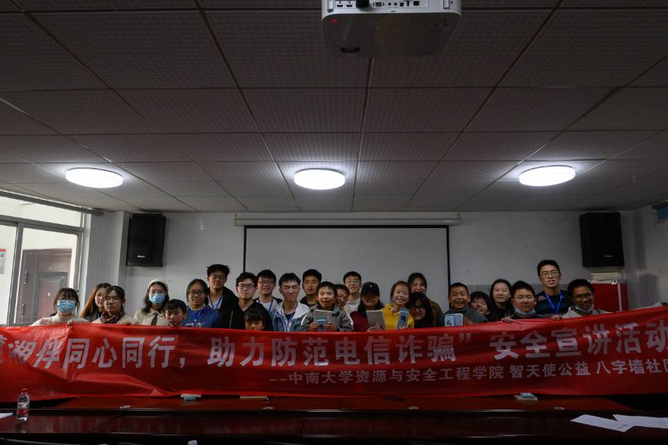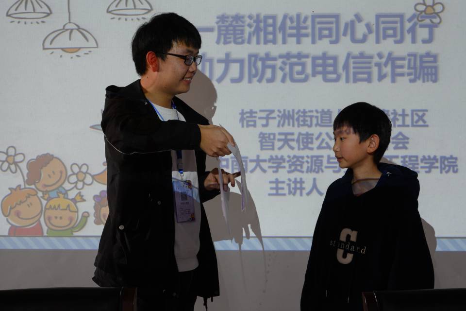 “中南小黄帽”工作室于八字墙社区公共服务中心室内活动室开展了“一麓湘伴同心同行,助力防范电信诈骗”安全宣讲活动。“中南小黄帽”工作室指导老师聂溪流、本科2019级辅导员肖碧涵和本科2021级辅导员李嘉参与本次活动并对本次活动。