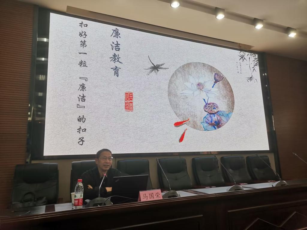 党委副书记马国荣担任主讲人,为老虎机种类2022级全体本科新生授“廉洁文化教育”专题讲座。
