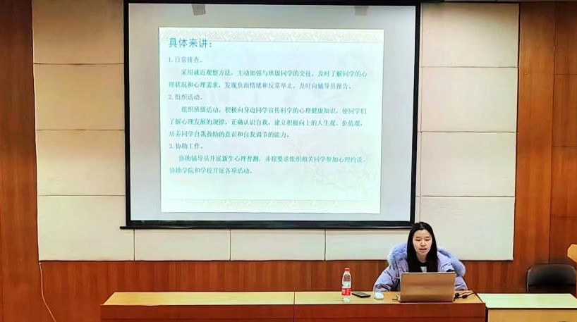朋辈心理互助会于2023年12月20日下午15:00在校本部采矿楼T201举办了“呵护心理健康,守护学生成长”心理委员实务培训会,本次培训会特邀资安院心理专干周婷老师到场讲解。参会人员为资安院全体心理委员。