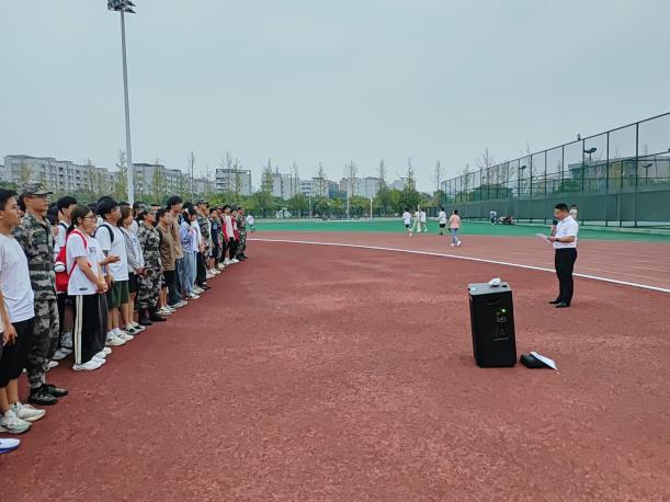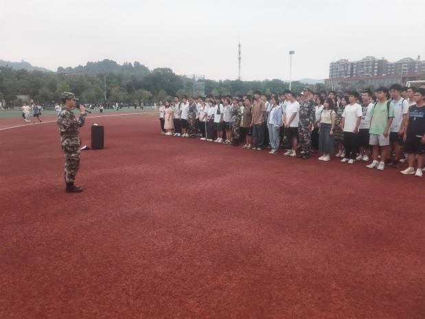 在新校区体育场副场和毓秀楼召开军训教官与新生见面会。院党委副书记岳龙,辅导员代表于谦、向奕博,军训团三连教官以及全体2024级新生参加。