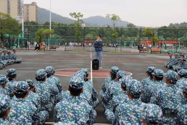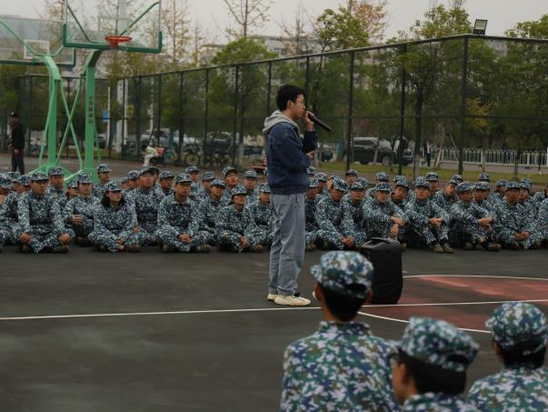 在新校区篮球场举办本科新生参军动员会,2021级学生原退伍士兵刘恒瑜以及全体新生参加,本次活动由辅导员向奕博主持。