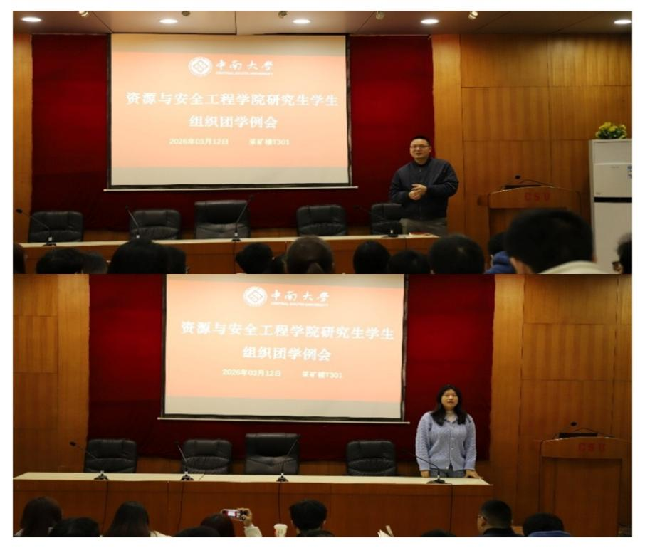 2026年3月12日晚,学院研究生会春季新学期学生工作会议在采矿楼T301顺利举办。学院团委书记丁德孝、团委副书记王子涵,研究生会及新媒体中心执行主席团、部长团及各部门干事参会。会议由执行主席边玉婷主持,围绕理论学习、工作述职、任务部署等几个关键点展开,进一步为新学期团学工作统一思想、凝聚共识、提质增效奠定基础。