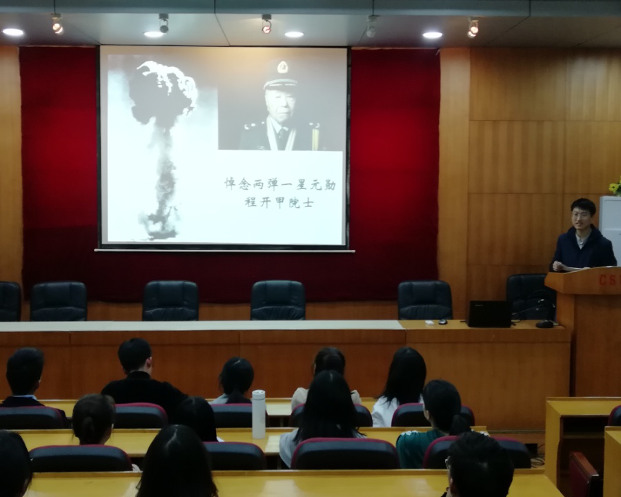 硕士1802班“正学风、扬班风”学风建设主题班会于采矿楼T301举办。班会由硕士1802班班长刘士浩主持,硕士1802班全体同学参加了本次班会。班会包括“两弹一星元勋程开甲院士先进事迹学习”、“筑梦新时代,担当新使命”和“恪守学术诚信”三个部分。