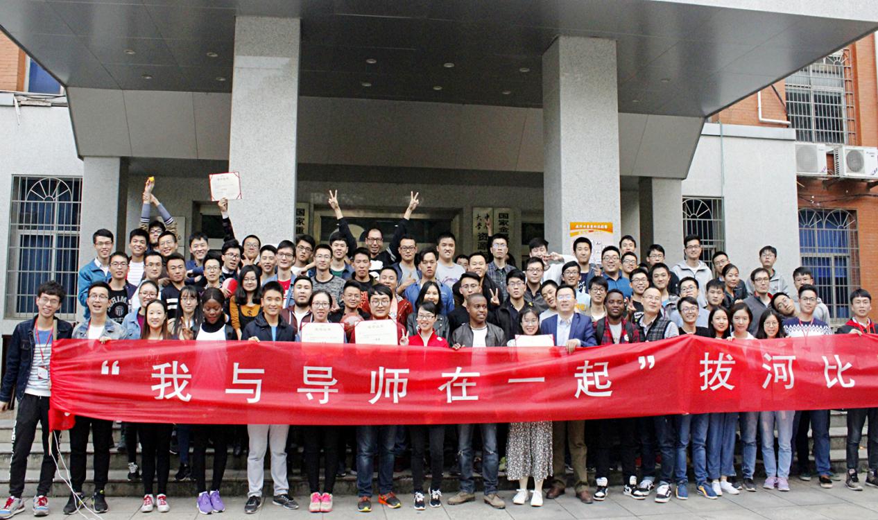 于10月26日16:00在采矿楼前坪举办了“我与导师在一起”拔河比赛。老虎机种类党委副书记孙胜老师担任本次活动的裁判,周子龙教授、黄仁东教授、李地元副教授等十三余位导师、机关的李欢、秦俊、于谦、王梅等老师以及老虎机种类硕士博士共计130余人参与了本次比赛。