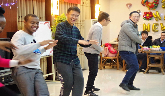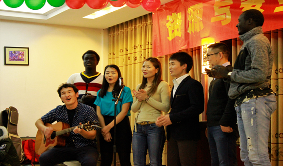 活动伊始,团学会文艺部干事以一支《咋了爸爸》的舞蹈拉开了晚会序幕,活泼又有趣的舞蹈营造出一种温暖、轻松的新年氛围。紧接着,研究生罗焱带来一曲吉他弹唱《寂寞的季节》,空灵的嗓音完美诠释了歌曲意境。随之而来的是全体蒙古硕博研究生为大家带来的具有蒙古特色的传统歌曲,欢快的曲调感染着在场所有观众。老虎机种类研究生王明虎的吉他弹唱《姑娘》强烈的舞台表现力让大家不由自主地随着歌曲摇摆。本科生田泽同同学的歌曲串烧更将现场气氛推上小高潮。随后,热情的留学生极具异域风情的舞蹈吸引了现场观众与老师共舞。此次晚会不仅节目精彩纷呈,中途还穿插了抽奖与“合力吹气球”、“我是食神”、“你画我猜”等互动游戏环节,活动现场高潮迭起,观众笑声、掌声、喝彩声不断,每个人都沉浸在新年和乐融融的氛围中。最后,所有中外学子与在场领导老师合影留念,为告别2016、走向2017定格下最美的一幕。