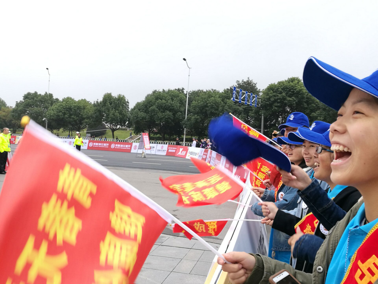 值得一提的是,在大批马拉松选手到达会场附近的时候,志愿者们拿起印有活动标语的旗子喊出口号为路过的运动员加油,和马拉松选手们进行了有趣的互动,达到宣传效果的同时,志愿者们也被选手们的精神所感染,现场气氛曾一度到达了高潮。