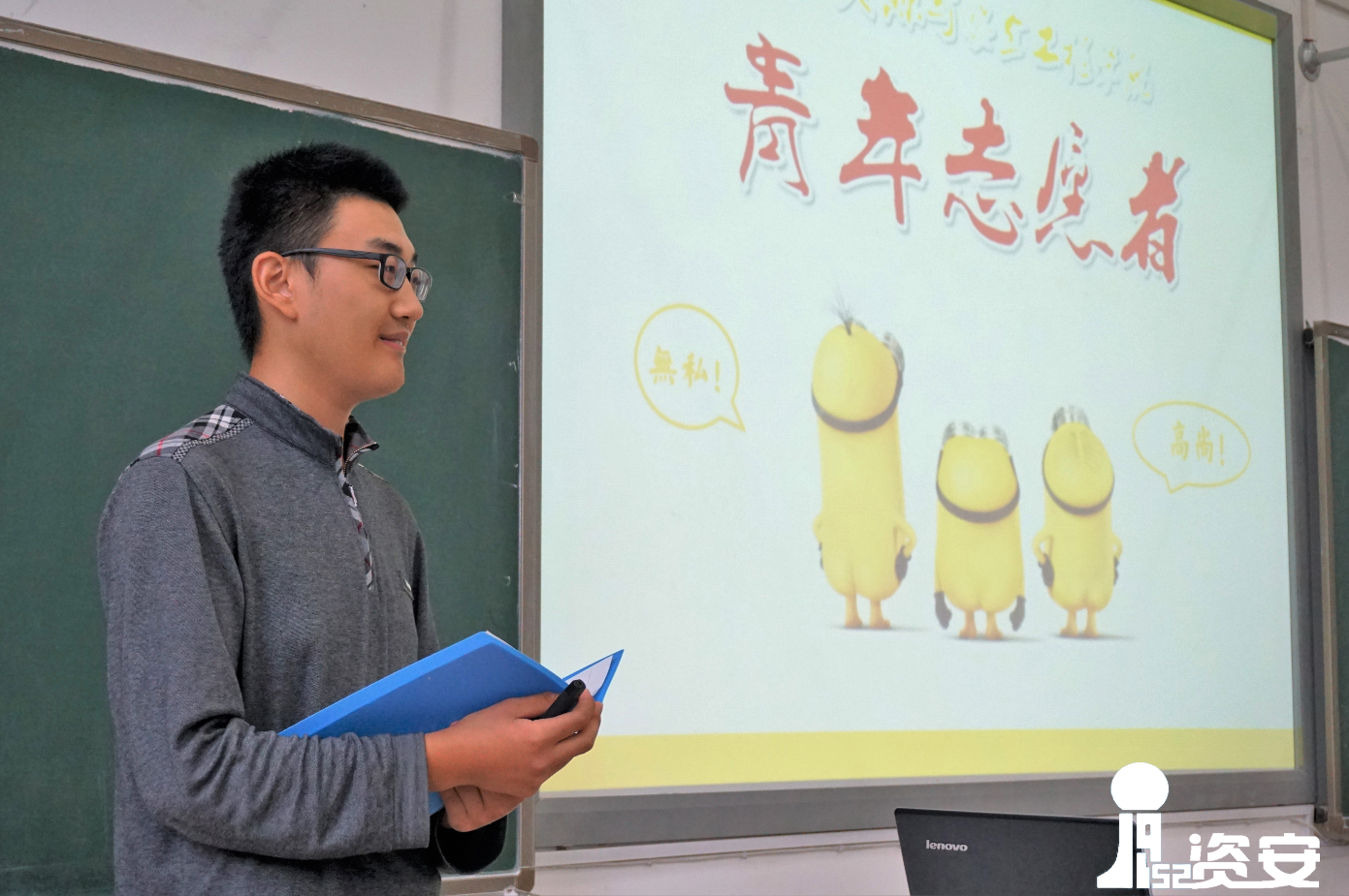 青年志愿者协会志愿者招新宣讲会在新校区D座203举行。本次宣讲会由资安院青志协干事程大为主讲,主题为“志愿传递文明,服务成就精彩”。