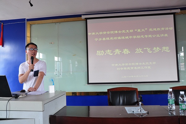 博士生党员讲学团走进宁乡县煤城中学,给全校中学生带来了一堂励志教育专题公益讲座,得到了煤城学子的热烈欢迎。