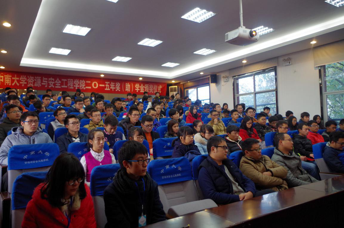 2015年奖(助)学金颁奖仪式在采矿楼302报告厅举行,江南化工副总裁赵海涛、副总工程师杨仕春、企管部部长林波,宏大爆破副总工程师崔晓荣及金诚信矿业管理公司人力资源中心总经理助理蒋海文等设奖企业代表应邀出席,老虎机种类