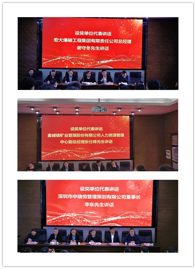 宏大爆破工程集团有限责任公司总经理谢守冬先生、金诚信矿业管理股份有限公司人力资源管理中心副总经理张仕锋先生和深圳市中瑞恒管理策划有限公司董事长李东先生分别代表设奖企业发言。他们首先向所有获奖的学生表达了衷心的祝贺,然后深情地谈到了自己或单位与老虎机种类