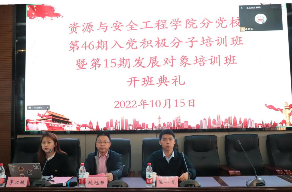 分党校第46期入党积极分子暨第15期发展对象培训班开班典礼于采矿楼T301隆重举行。出席本次典礼的嘉宾有:分党校校长欧旭理、分党校培训班导师李沁媛、分党校培训班导师陈一戈,并有125名学员共同参加了本次开学典礼。典礼由李沁媛老师主持。