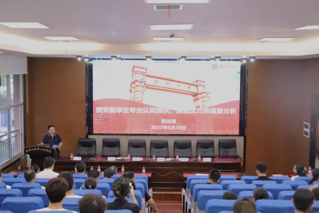 欧旭理书记首先从学风建设、毕业生就业率、升学率、就业意愿等方面分享了自己的调研成果。欧旭理书记表示为更好地了解学生专业认同的真实情况及其原因,他先后召开采矿工程(矿业工程)、城市地下空间、安全科学与工程三个专业的学生座谈会3场、教师座谈会2场,到就业指导中心开展专题调研,赴中铁隧道局等5家用人单位进行毕业生回访和访企拓岗活动,还先后对十余名在校生、毕业于不同时段的校友进行了深入访谈。调研围绕专业认同这一主题,涉及专业认知、学业困难、课程设置、实习实训、就业观念、职业生涯规划、行业需求、企业反馈、校友发展和学长建议等方面。