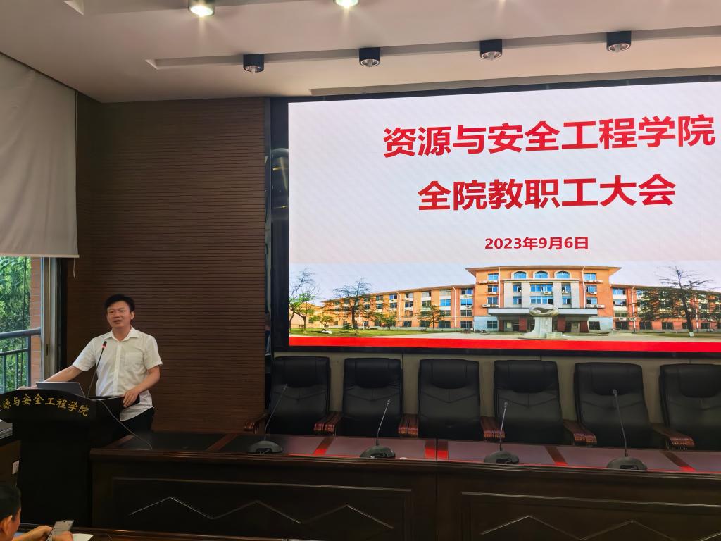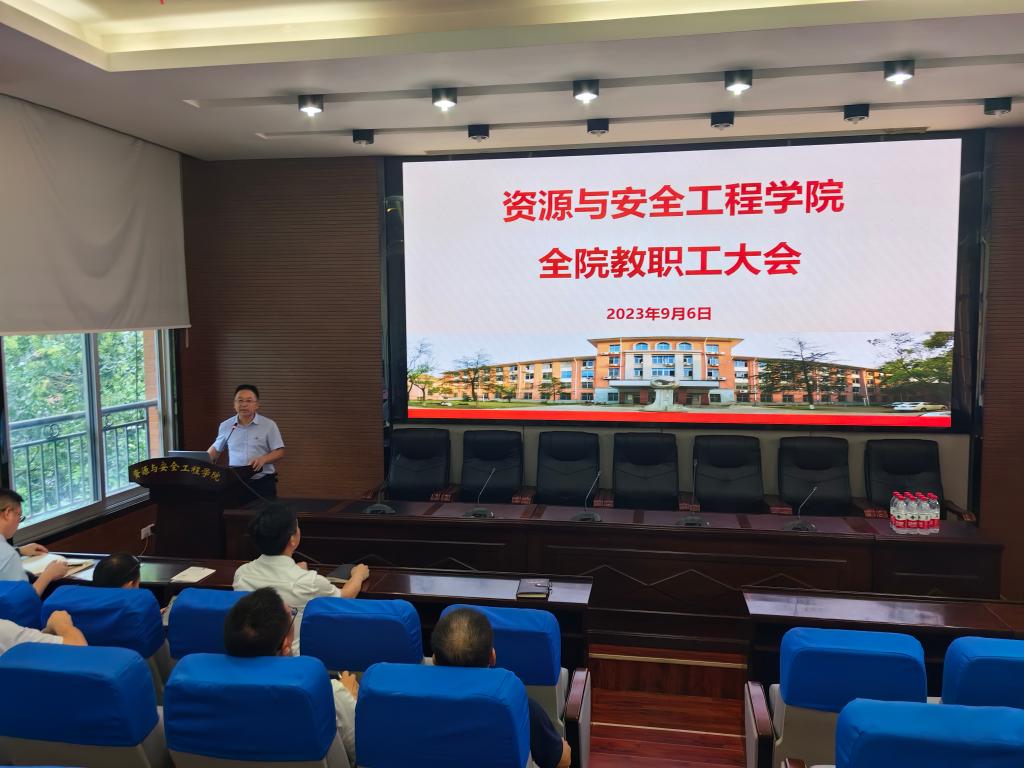 在采矿楼302报告厅召开了新学期工作会议,会议由院党委书记欧旭理主持,全体院领导及教职工参加会议。