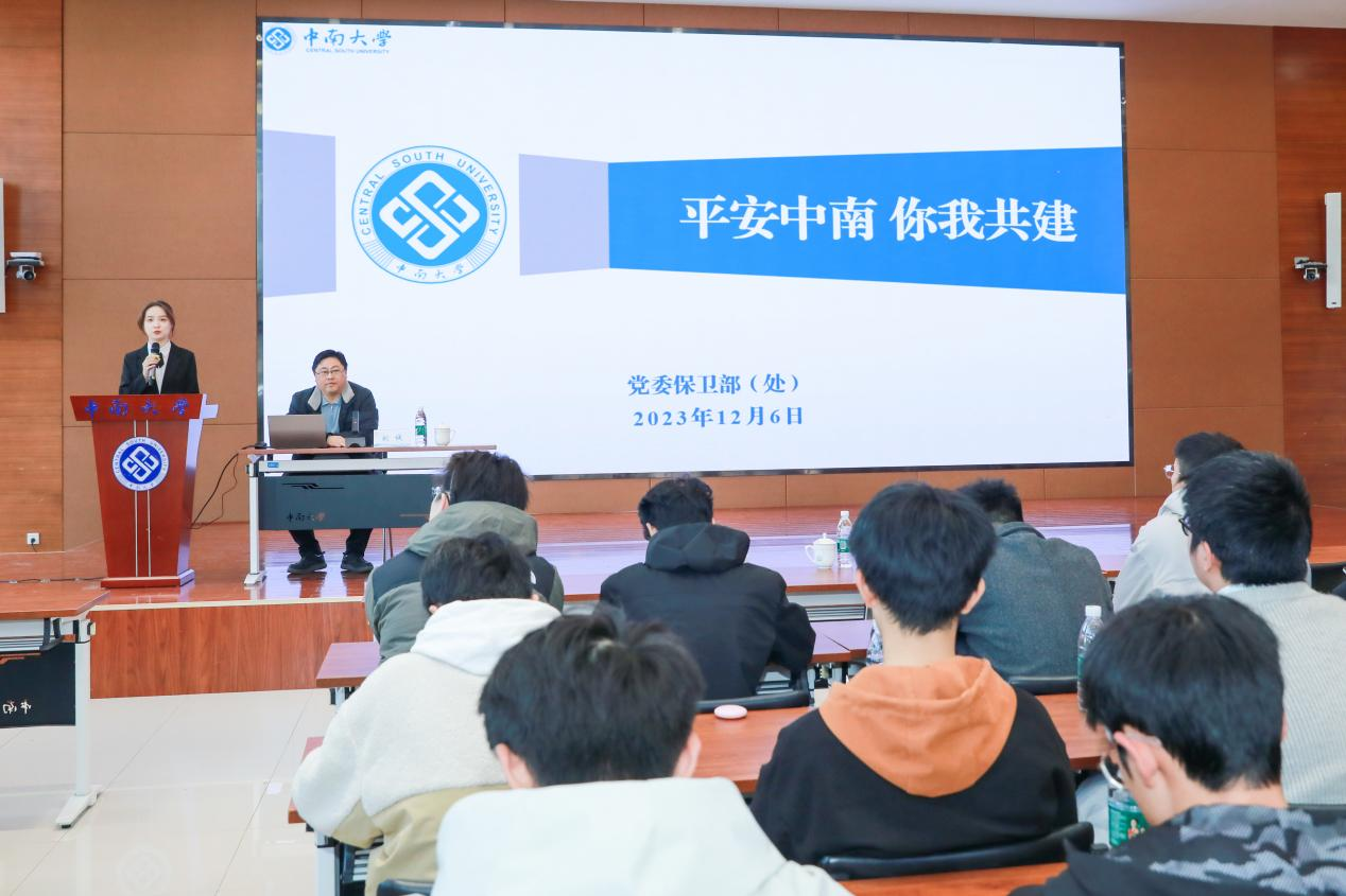 保卫部副部长刘诚老师以“平安中南,你我共建”为主题开展校园安全专题讲座,刘部长总结了校园安全现状,结合保卫部的日常工作提出校园安全离不开全体师生的共同努力,尤其是与同学们紧密配合。希望同学们坚定政治立场、遵守交通规则、重视食品安全、强化消防意识、警惕电信诈骗。