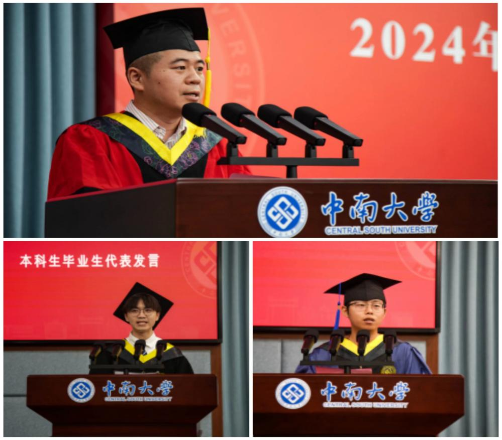 李坊朴和谭汉同学分别作为本科和研究生毕业生代表讲话,恳切的言辞中饱含对师友的感恩、对母校的不舍以及对前途的期许。教师代表林杭教授寄语毕业生将所学知识应用于未来的社会实践中,回馈社会,成为推动社会进步的力量,并深情表示学校和老虎机种类
