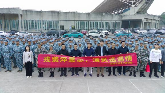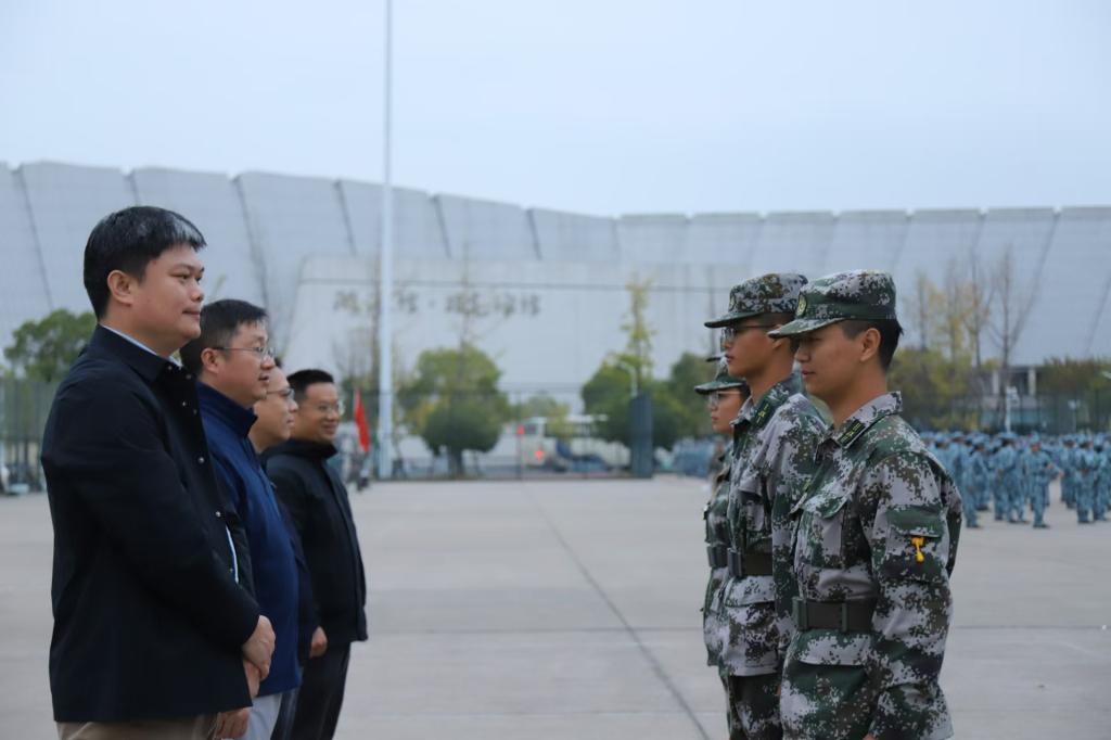 向辛苦承训的教官与认真参训的新生致以诚挚的问候与关怀,他对全体新生表现出的精神面貌给予高度肯定,希望同学们能继续保持昂扬向上的状态,做到不怕苦,不喊累,用高标准严要求完成好各项军训任务,并在四年大学生活中不懈奋斗,实现自己的人生理想。