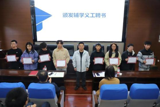 岳龙副书记为辅学义工颁发聘书并与同学们分享交流。他指出,同学们要正确认识自己,每位同学应当充分相信自己的能力与水平,要对未来满怀信心与希望,珍惜目前的平台与机会。同学们要正确看待专业学科,不断提升专业核心竞争力,将自己所学专业同国家战略重点相结合,在响应国家号召中实现人生价值,努力成为行业领军人才。同学们要养成良好学习习惯,清楚认识个性化学业困难差异,认真抓好课堂与课后,敢于下定决心奋力拼搏。最后岳龙副书记号召全体同学向辅学义工的辛勤付出表示感谢,同时希望全体同学能在学业问题上团结互助,共同进步,做到不让任何一位同学掉队。